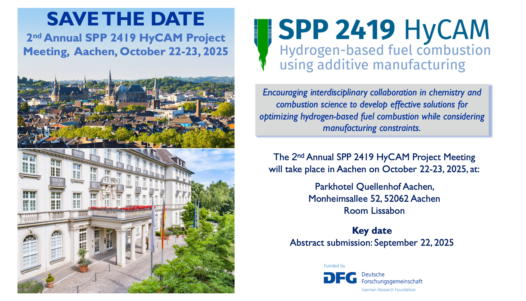 Das 2. jährliche Treffen des SPP2419 HyCAM findet am 22.23. Oktober 2025 in Aachen im Parkhotel Quellenhof statt.